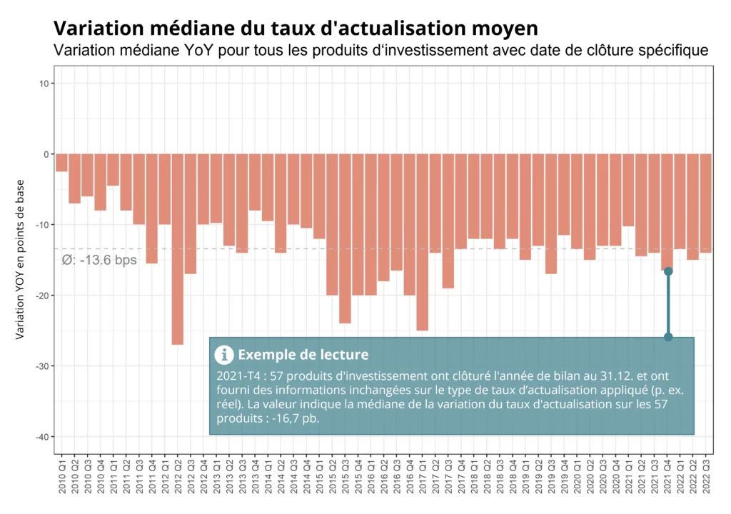 Les taux d’actualisation ont continué à baisser en YoY, y compris pour
