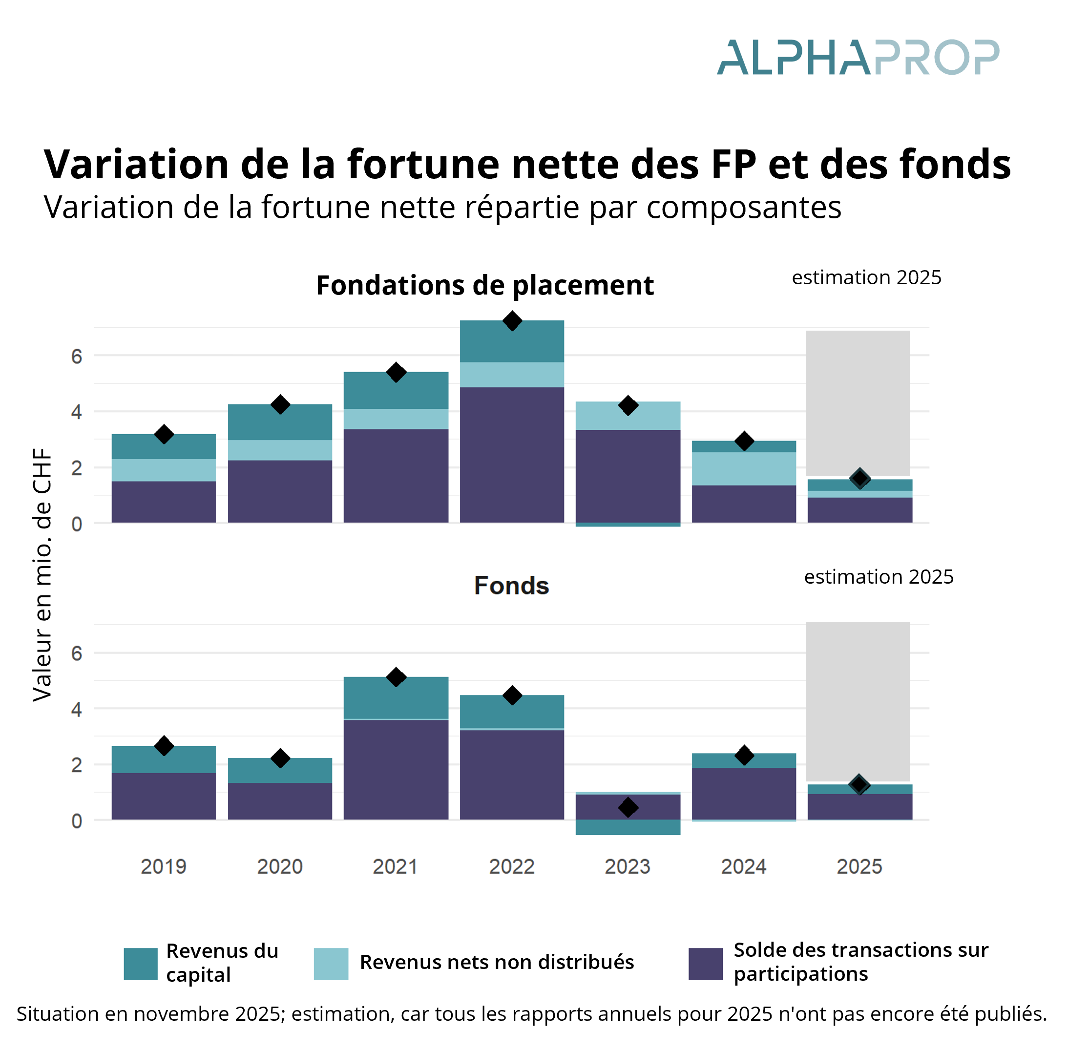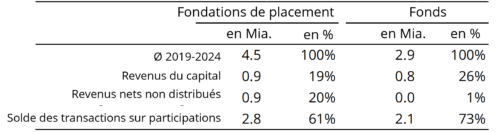 Un examen de la composition de la croissance montre que les fondations de placement ont pu augmenter leur fortune nette d’environ 4,5 milliards de francs par an en moyenne au cours des dernières années. Le principal moteur a été le solde des transactions sur parts, c’est-à-dire les entrées nettes de capitaux, qui explique plus de 60 % de cette croissance. Les revenus du capital et les revenus thésaurisés ont également joué un rôle important dans la croissance.