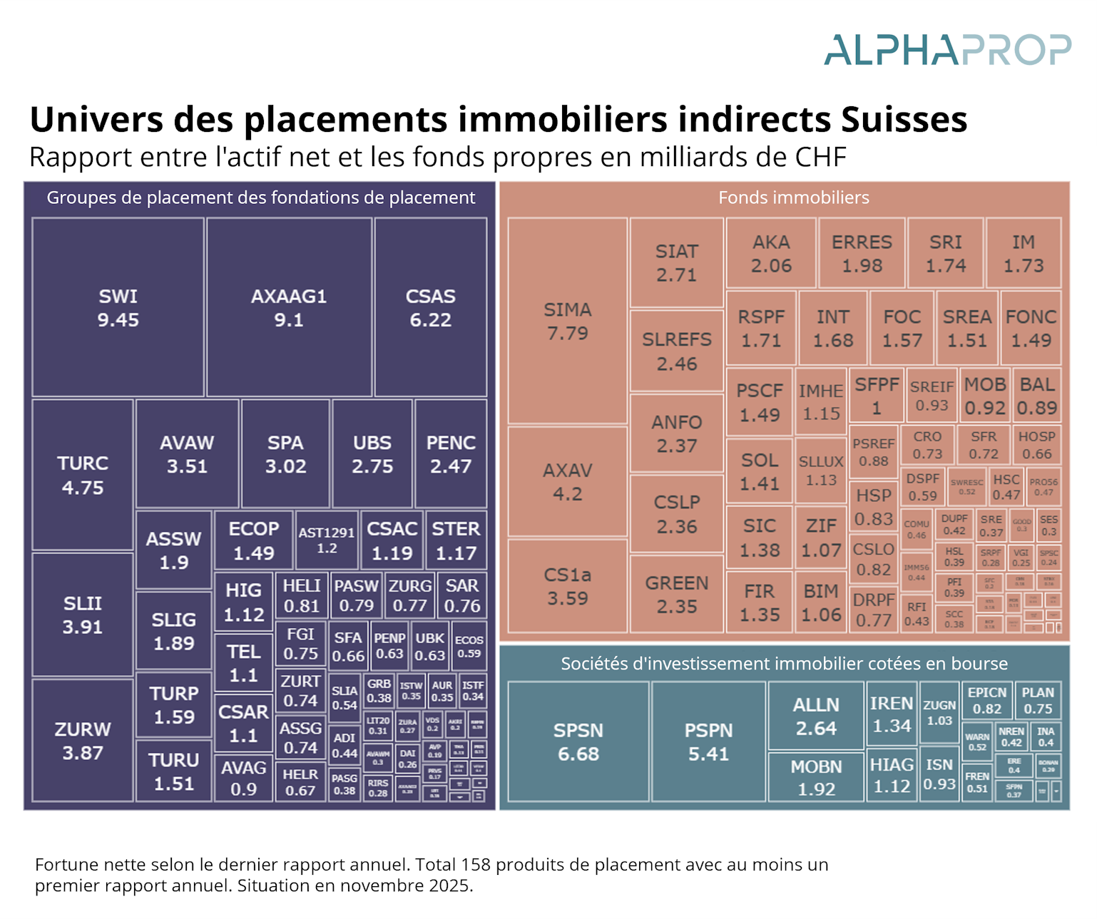 Le marché des placements immobiliers indirects en Suisse a connu une évolution remarquable ces dernières années. Avec actuellement quelque 160 produits de placement et une fortune nette agrégée d’environ 177 milliards de francs, les placements immobiliers indirects sont passés d’un segment de niche à une classe d’actifs à part entière et importante. Du côté des fondations de placement, 62 groupes de placement réuniront environ 77 milliards de francs d’actifs nets en 2025.