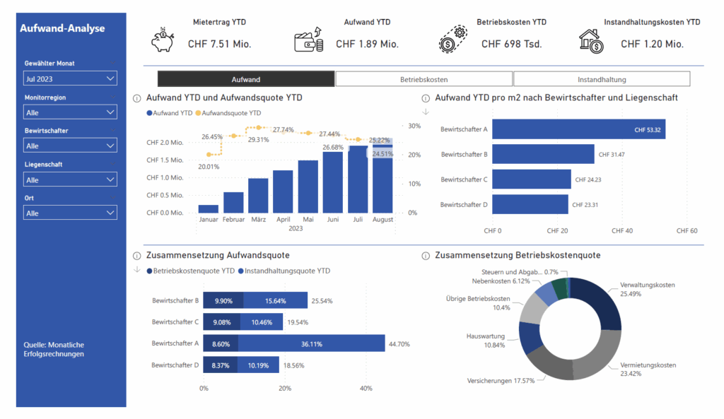 Les rapports pour différents groupes cibles et cas d’utilisation sont générés automatiquement et peuvent être analysés de manière conviviale dans des dasbhoards interactifs.