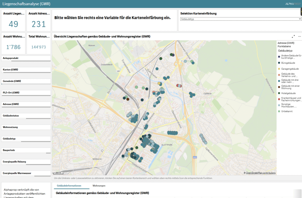 • Analysemöglichkeit bis auf Ebene Einzelliegenschaft (über 9’500 Objekte)