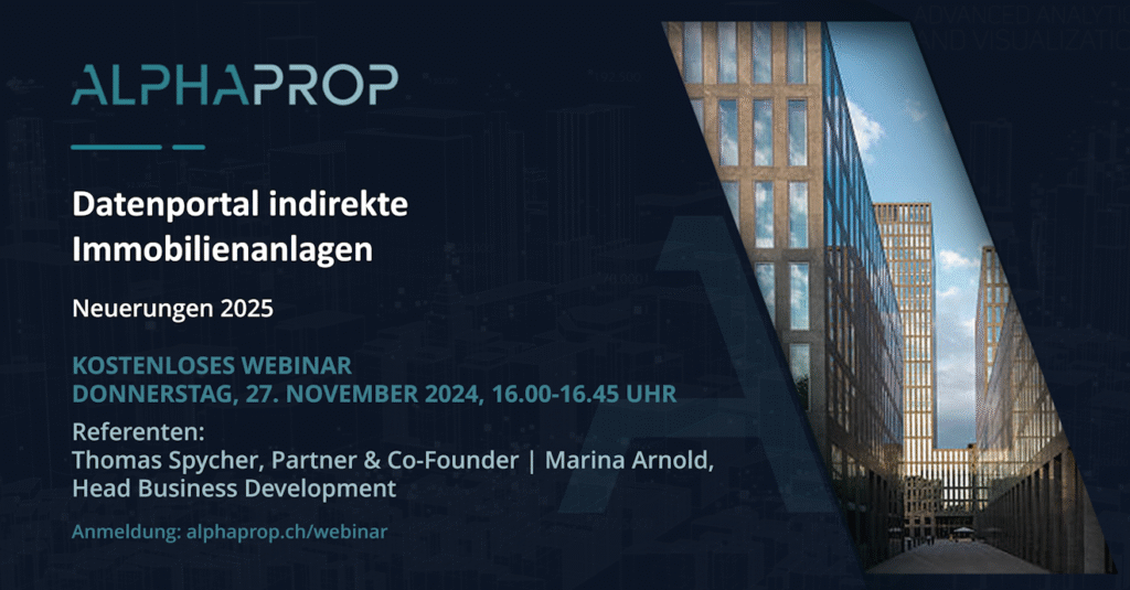 Vor fünf Jahren gegründet, hat sich das Alphaprop Datenportal rund um indirekte Immobilienanlagen stetig weiterentwickelt. Anlässlich des Webinars stellen wir Ihnen die wichtigsten Neuerungen und Ergänzungen des vergangenen Jahres vor.