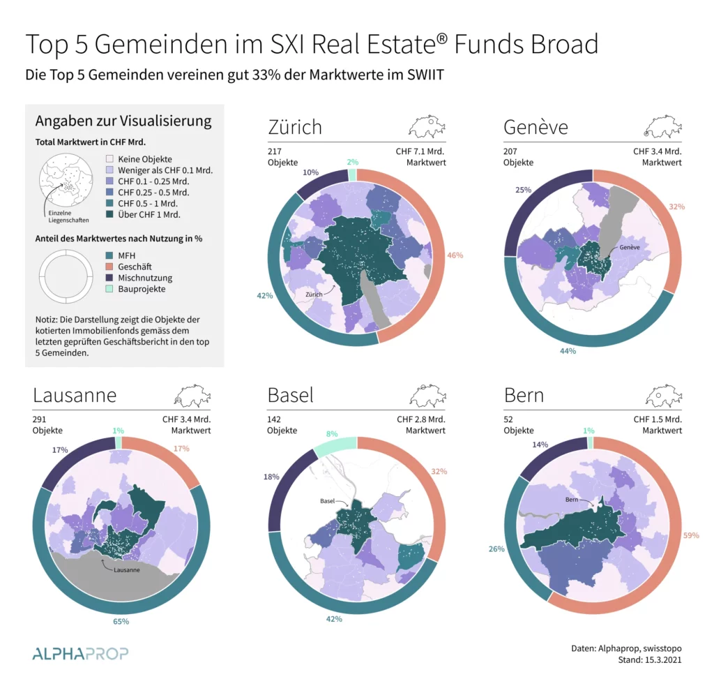 • Gut 1/3 des Marktwertes im SWIIT ist in den grössten 5 Schweizer Städten investiert